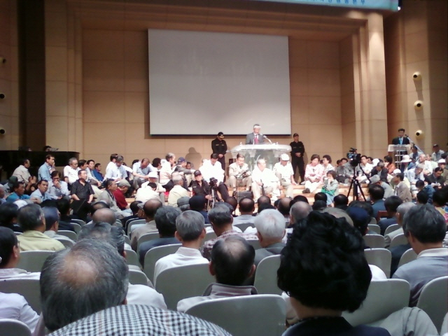 6¿ù 9ÀÏ Á¾·Î±¸ ±âµ¶±³100Áֳ⠱â³äȸ°ü¿¡¼´Â ±¹¹ÎÇൿº»ºÎ ÁÖÃÖÀÇ °¿¬È¸¸¦ µè±â À§Çؼ º¸¼öÀλçµéÀÌ 2500¿©¸íÀÌ ¸ô·Á¿Ô´Ù. ±èµ¿±æ ±³¼ö¿Í Á¶°©Á¦ Á¶°©Á¦´åÄÄ ´ëÇ¥ÀÇ ¿¬¼³À» µé±â À§Çؼ ¿´´Ù. À̵é Áß¿¡ 1/3ÀÎ 900¿©¸í¸¸ °¿¬È¸Àå¿¡ ÀÔÃßÀÇ ¿©Áö°¡ ¾øÀÌ µé¾î¾É¾Æ, ±èµ¿±æ ±³¼ö¿Í Á¶°©Á¦ ´ëÇ¥ÀÇ °¿¬À» µé¾ú°í, ³ª¸ÓÁö ºÐµéÀ» µÇµ¹¾Æ°¬´Ù. ÃÖ±Ù¿¡ ³ë¹«ÇöÀÇ Àڻ쿡 ´ëÇÑ ºñÆÇÀû ÁÖÀåÀ¸·Î ÁÂÀͼ¼·ÂÀ¸·ÎºÎÅÍ ÁýÁßÀûÀ¸·Î ºñ³¹Þ¾Ò´ø ±èµ¿±æ ±³¼ö´Â ÀÚ»ìÇÑ ³ë¹«Çö Àü ´ëÅë·ÉÀ» ¿µ¿õÀ¸·Î ¹ÌÈÇÏ´Â ¹æ¼ÛÀÇ ¹°»ó½Ä°ú ³ë¹«ÇöÀÇ Á×À½À» Á¤Ä¡ÀûÀ¸·Î ÀÌ¿ëÇÏ´Â ÁÂÀͼ¼·ÂÀÇ ¹Ý¶õÀû ÇàÀ§¸¦ À¯¸ð¾î¸¦ ¼¯¾î ¿©À¯ ÀÖ°Ô ºñÆÇÇß´Ù.