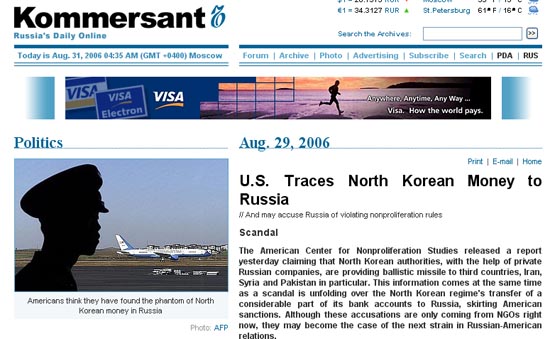 ·¯½Ã¾ÆÀÇ À¯·Â ¿µ¹® Àϰ£ÁöÀÎ ¡®ÄÚ¸Þ¸£»êÆ®¡¯(kommersant)´Â ÃÖ±Ù º¸µµ¿¡¼ ¡®±¹Á¦À§±â°¨½Ã±â±¸¡¯(ICG)ÀÇ ÇÇÅÍ º¤ µ¿ºÏ¾Æ »ç¹«¼ÒÀåÀÇ ¸»À» Àοë, ·¯½Ã¾Æ¿Í ºÏÇÑ °£ ±ÝÀ¶°Å·¡ÀÇ »ó´çÇÑ °³¿¬¼ºÀÌ ÀÖ´Ù¸é¼ ·¯½Ã¾Æ´Â ºÏÇÑ¿¡ ¿·ÁÀÖ´Â ¸¶Áö¸· ±ÝÀ¶ ÇdzóÀÓÀ» Áö¸ñÇß´Ù.