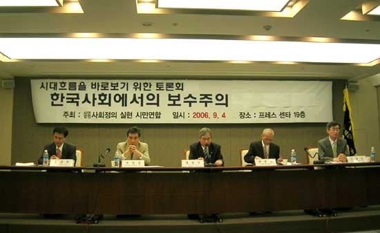 À̳¯ ¡®Çѱ¹¿¡¼ º¸¼ö´Â ¹«¾ùÀ» ÀǹÌÇϳª¡¯¸¦ ÁÖÁ¦·Î Á¦1¹ßÁ¦¿¡ ³ª¼± ÀÌ»óµ· Áß¾Ó´ë ±³¼ö´Â ¡°ºÒ°ú 10³â ¸¸¿¡ Çѱ¹ »çȸÀÇ ÁÖµµ±ÇÀº Áøº¸ÁÂÆÄ·Î ³Ñ¾î°¡°Ô µÆ°í, µµ´ö°ú À±¸®¿¡ ÈìÁýÀÌ ³ º¸¼ö ¼¼·ÂÀº º¯¹æÀ¸·Î ¹°·¯³ª°Ô µÇ¾ú´Ù¡±¸é¼ ¡°±× °á°ú Çѱ¹¿¡´Â Áøº¸ÁÂÆÄ¿Í ¾çºñ·ÐÀ» Æì´Â Áßµµ¼¼·Â¸¸ÀÌ Á¸ÀçÇÏ°Ô µÆ´Ù¡±°í Áø´ÜÇß´Ù.