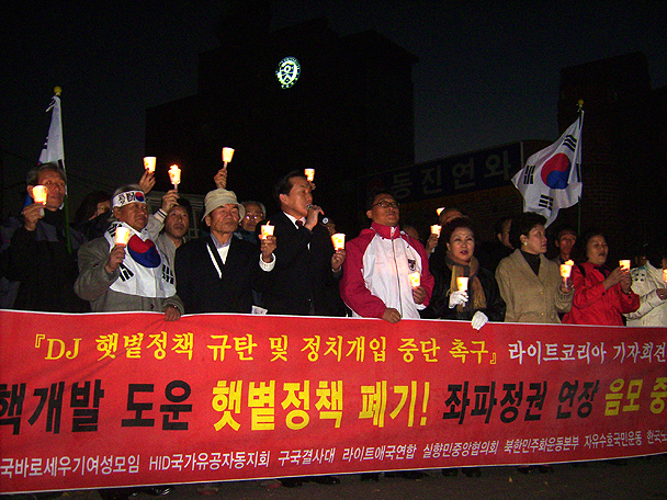 14ÀÏ Àú³á ±è´ëÁßµµ¼­°ü ¾Õ¿¡¼­, ±è´ëÁß îñ ´ëÅë·ÉÀÇ 'ÇÞºµÁ¤Ã¥'°ú 'Á¤Ä¡°³ÀÔ'À» ±ÔźÇÏ´Â ¼¼¹øÂ° ÃкҽÃÀ§(¶óÀÌÆ®ÄÚ¸®¾Æ ÁÖÃÖ)°¡ ¿­·È´Ù.