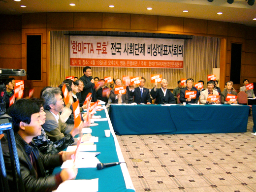 Àü±¹¿¬ÇÕ µî Ä£ºÏ´Üü°¡ ÁÖµµÇØ ¸¸µç¡¸ùÛÚ¸FTAÀúÁö¹ü±¹¹Î¿îµ¿º»ºÎ(FTA¹ü±¹º»)¡¹´Â 13ÀÏ ¼­¿ï ¸íµ¿ÀºÇàȸ°ü¿¡¼­ ¼ÒÀ§¡¸ùÛÚ¸FTAŸ°á¹«È¿È­îïÏлçȸ´Üü´ëÇ¥ÀÚȸÀÇ¡¹¸¦ °³ÃÖÇß´Ù.