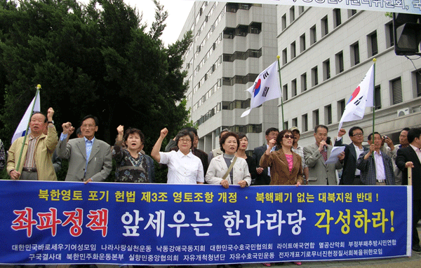 À̵éÀº ¼º¸íÀ» ÅëÇØ ¡ºÈ«ÁØÇ¥ ÀÇ¿øÀÌ ºÏÇÑ ¿µÅ並 Æ÷±âÇÏ´Â ¿µÅäÁ¶Ç× °³Á¤À» ÁÖÀåÇÏ´Â °ÍÀº ºÏÇÑÀ» ±¹°¡·Î ÀÎÁ¤, Çѹݵµ ¿µ±¸ºÐ´ÜÀ» ²ÒÇÏ´Â ÚãÅëÀÏÀû ¸Á¾ð¡»À̶ó¸ç ¡ºÀÚÀ¯¹ÎÁÖÁÖÀÇ ¹æ½ÄÀ» Æ÷±âÇÏ´Â ¿¬¹æÁ¦ ÅëÀÏÀ» ÇÕ¹ýȽÃŰ´Â ±Ù°ÅÀÎ ¿µÅäÁ¶Ç× °³Á¤¿¡ ¾ÕÀå¼´Â Çѳª¶ó´çÀº Ä£ºÏÁÂÆÄÁ¤´ç¡»ÀÌ³Ä°í ¹Ý¹®Çß´Ù.