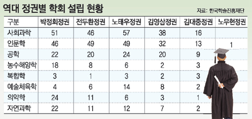 °æÁ¦¹ßÀüÀ» Áß½ÃÇß´ø ¹ÚÁ¤Èñ Á¤±ÇºÎÅÍ ³ëÅ¿ì Á¤±Ç±îÁö´Â À̰ø°è ÇÐȸÀÇ ¡®À¶¼º±â¡¯´Ù. °øÇÐ ºÐ¾ß 105°³ ÇÐȸ °¡¿îµ¥ 21%ÀÎ 22°÷ÀÌ ¹ÚÁ¤Èñ Á¤±Ç ¶§ ¼³¸³µÆ´Ù. ÀüµÎȯ Á¤±Ç ¶§ 20°÷(19.0%), ³ëÅ¿ì Á¤±Ç ¶§ 24°÷(22.9%)ÀÌ »ý°Ü À̵é Á¤±Ç¿¡¼ ¸ðµÎ 62.9%°¡ ¼³¸³µÆ´Ù.