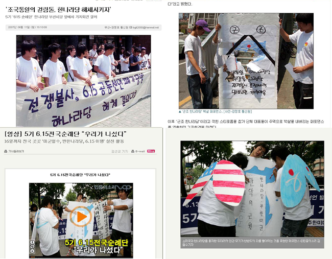 ¡¸6¡¤15¼ø·Ê´Ü¡¹Àº 6¿ù5ÀÏ ¼¿ï Ú¸´ë»ç°ü ¾Õ¿¡¼ ¹ß´ë½ÄÀ» °¡Áø ÈÄ Ãáõ-¼ö¿ø-ûÁÖ-±¤ÁÖ-´ë±¸-ºÎ»ê-´ëÀü-¼¿ï-°æ±â¸¦ °ÅÃÄ 16ÀϱîÁö Ȱµ¿Çß´Ù. Çѳª¶ó´çÀ» ±ÔźÇÏ´Â Áýȸµµ °è¼ÓµÆ´Ù.