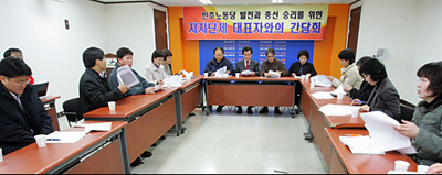 ±¹º¸¹ýÆóÁö¡¤¹Ì±ºÃ¶¼ö¡¤¿¬¹æÁ¦ÅëÀÏ µî ºÏÇÑÀÇ ÓßÑõ³ë¼±À» ÃßÁ¾ÇØ ¿Â Àü±¹¿¬ÇÕ ¼Ò¼Ó´Üü ÇÑû¡¤Àü³ó(îïÒÜ)¡¤Àü¿©³ó(îïåüÒÜ)¡¤ ¹× ÀÌ¿Í À¯»çÇÑ ³ë¼±À» ÃëÇØ ¿Â ¹ÎÁÖ³ëÃÑÀº 14ÀÏ ¹Î³ë´ç »ç¹«½Ç¿¡¼ õ¿µ¼¼ ÀÇ¿ø µî ÁöµµºÎ¿Í °£´ãȸ¸¦ °®°í ÀÌ °°ÀÌ ¹àÇû´Ù.