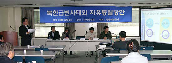 25ÀÏ °°Àº Àå¼Ò¿¡¼ ÁøÇàµÈ 2Â÷ ¼¼¹Ì³ª¿¡ Âü¼®ÇÑ ºÏÇÑÇØ¹æµ¿¸Í ¸â¹öµéÀº ¡°´ëÇѹα¹Àº ÓßÝÁÀÛÀüÀ» ÅëÇØ ºÏÇÑÀÇ ±Þº¯»çŸ¦ ÅëÁ¦µÈ ¹æÇâÀ¸·Î À¯µµÇØ¾ß Çϸç, ±Þº¯»çŰ¡ ¹ß»ýÇϸé (ÁÂÆÄÁø¿µ¿¡¼ ¸»ÇؿԴø) ¡®¿¬¹æÁ¦¡¯ÀÇ æ²Àû¿ë ¹× ±º»çÀû ºÏÁø(ÀÌ °æ¿ì ±¹±º´Üµ¶ ºÏÁø, Çѹ̿¬ÇÕ±ºÀÇ ºÏÁø, UNÀ» ÅëÇÑ ºÏÁø µîÀÌ ÀÖ´Ù)À» ÅëÇØ ÀÚÀ¯ÅëÀÏÀ» ÀÌ·ï³»¾ß ÇÑ´Ù¡±°í ÁÖÀåÇß´Ù.