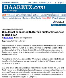 ÇÏ·¹Ã÷´Â '¹Ì±¹°ú À̽º¶ó¿¤ÀÇ °ü¸®µéÀº 8ÀÏ ½Ì°¡Æ÷¸£¿¡¼­ ¿­¸®´Â ¹Ì-ºÏ ȸµ¿¿¡¼­ ºÏÇÑ¿¡°Ô Áßµ¿Áö¿ª ±¹°¡µé°úÀÇ ÇÙÇù·ÂÀ» °ø°³Çϵµ·Ï ¾Ð¹ÚÇÒ °èȹ'À̶ó¸ç '¿ö½ÌÅϰú À̽º¶ó¿¤¿¡¼­ ÀÔ¼öÇÑ Á¤º¸'ÀÓÀ» Àοë, 'ºÏÇÑÀº À̶õ¿¡ ºñ¹Ð ÇÙ¹«±â ÇÁ·Î±×·¥À» Áö¿øÇϱâ À§ÇØ ÇÙ±â¼ú¡¯(technology)°ú ÇÙ¹°Áú(nuclear materials)À» ÀÌÀü(transferred)Çß´Ù'°í º¸µµÇß´Ù.
