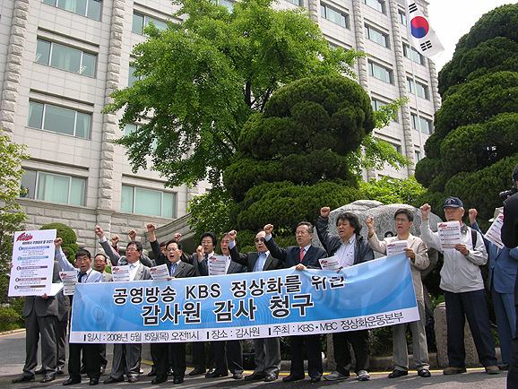 º¸¼ö´Üü ȸ¿øµéÀÌ °¨»ç¿øÀ» ¹æ¹®, °ø¿µ¹æ¼Û KBS¿¡ ´ëÇÑ °¨»ç(ÊøÞÛ)¸¦ ÇØÁÙ °ÍÀ» Ã˱¸Çß´Ù. À̵éÀº KBS°¡