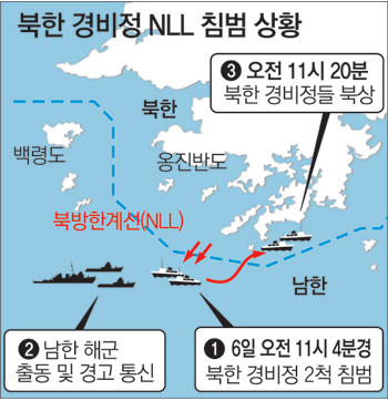 ºÏÇÑ °æºñÁ¤µéÀÌ NLLÀ» ³ÑÀÚ ±º ´ç±¹Àº ÇØ±º ÃʰèÇÔ°ú °í¼ÓÁ¤, Çï±â µîÀ» ÇöÀå¿¡ Ã⵿½ÃÄÑ ¸¸ÀÏÀÇ »çÅ¿¡ ´ëºñÇßÀ¸¸ç ºÏÃø ÇÔÁ¤¿¡ Áï°¢ ºÏ»óÇÒ °ÍÀ» ¿ä±¸ÇÏ´Â °æ°í Åë½ÅÀ» ½Ç½ÃÇÑ °ÍÀ¸·Î ¾Ë·ÁÁ³´Ù. ³²ÃøÀÇ °æ°í Åë½ÅÀ» ¹ÞÀº ºÏÇÑ °æºñÁ¤µéÀº NLLÀ» ħ¹üÇÑ Áö 16ºÐ ¸¸ÀÎ À̳¯ ¿ÀÀü 11½Ã 20ºÐ°æ NLL À̺ÏÀ¸·Î µÇµ¹¾Æ°£ °ÍÀ¸·Î ÀüÇØÁ³´Ù.