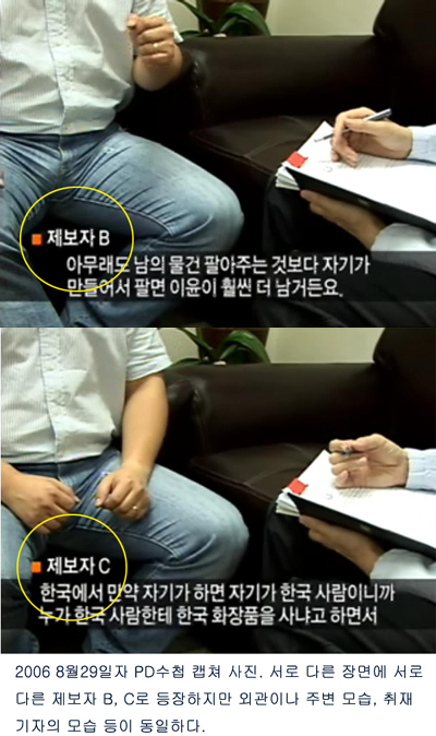 ³í¶õÀÇ ´ë»óÀº 2006³â 8¿ù29ÀÏÀÚ PD¼öø. ´ç½Ã ÀÌ ÇÁ·Î±×·¥Àº ÇÑ ÈÀåǰȸ»çÀÇ °úÀ層°í¸¦ ºñÆÇÇÏ´Â ³»¿ëÀ̾ú´Ù.