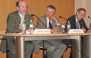 15ÀÏ ¿ö½ÌÅÏ¿¡¼­ ¿­¸° Åä·Ðȸ, ¿ÞÂʺÎÅÍ Marcus Noland, David Hawk, Carl Gershman, and Nicolas Eberstadt RFA PHOTO/Àå¸íÈ­