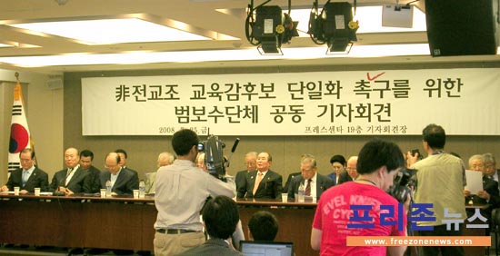 ÀÚÀ¯½Ã¹Î¿¬´ë¡¤¼±ÁøÈ±¹¹ÎȸÀÇ¡¤±¹Á¦¿Ü±³¾Èº¸Æ÷·³ µî 275°³ ÀÚÀ¯Áø¿µ ½Ã¹Î´ÜüµéÀº 25ÀÏ ¼¿ï ÇÁ·¹½º¼¾ÅÍ 19Ãþ ±âÀÚȸ°ßÀå¿¡¼ Çö½ÂÁ¾ Àü ±¹¹«ÃѸ® µîÀÇ ÀλçµéÀÌ Âü¼®ÇÑ °¡¿îµ¥ ¡®ºñÀü±³Á¶ ¼¿ï½Ã ±³À°°¨ Èĺ¸ ´ÜÀÏÈ Ã˱¸ ¹üº¸¼ö °øµ¿±âÀÚȸ°ß¡¯À» ¿¾ú´Ù.