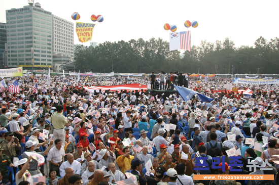 5ÀÏ ¿ÀÈÄ 5½Ã, ¼­¿ï½Ãû ±¤Àå¿¡¼­´Â 3¸¸¿© ¸íÀÇ ½Ã¹ÎµéÀÌ ¸ðÀÎ °¡¿îµ¥ Çѹ̵¿¸Í °­È­¸¦ À§ÇÑ ¡®ºÎ½Ã Ú¸´ëÅë·É ȯ¿µ ±¹¹Î´ëȸ¡¯°¡ ¿­·È´Ù. À̳¯ ±¹¹Î´ëȸ¿¡ ³ª¿Â ¿¬»ç¿Í ½Ã¹ÎµéÀº ¡®¿µÅä ¾ß½ÉÀÌ ¾ø´Â ¹Ì±¹°úÀÇ µ¿¸Í °­È­¡¯¿Í ¡®ÃкҽÃÀ§ ¼¼·Â ¾ö´Ü¡¯À» ¿ÜÃÆ´Ù.