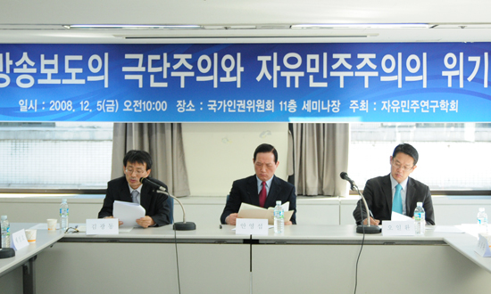 ³ª¶óÁ¤Ã¥¿¬±¸¿ø ±è±¤µ¿ ¿øÀåÀº 5ÀÏ ÀÚÀ¯¹ÎÁÖ¿¬±¸ÇÐȸ°¡ ÁÖÃÖÇØ ±¹°¡ÀαÇÀ§¿øÈ¸ ¹è¿òÅÍ¿¡¼ ÁøÇàµÈ ¡®¹æ¼Ûº¸µµÀÇ ±Ø´ÜÁÖÀÇ¿Í ÀÚÀ¯¹ÎÁÖÁÖÀÇÀÇ À§±â¡¯ ¼¼¹Ì³ª¿¡¼ ¡°KBS¡¤MBC¡¤SBS¡¤YTN µî 4´ë TV¹æ¼Û ºÏÇѰü·Ã ¹æ¼Û¿¡¼ ³íÆòÀÚÀÇ ÆíÇ⡤¿Ö°îµÈ ³íÆòÀ¸·Î Çѱ¹»çȸÀÇ Çå¹ýÁ¤½Å°ú ÀÚÀ¯ÁÖÀÇÀû ±âº»Áú¼¸¦ ±Ùº»ÀûÀ¸·Î Ä§ÇØÇϰí ÀÖ´Ù¡±¸ç À̰°ÀÌ ÁÖÀåÇß´Ù.