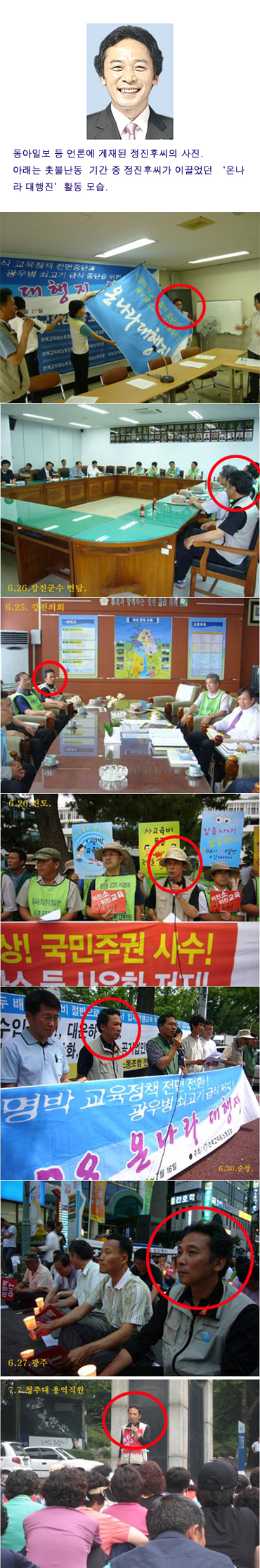 Á¤ÁøÈľ¾ º»Àεµ Ãкҳ­µ¿(ÑêÔÑ) ±â°£ ¾Ç¸íÀ» ¶³Ä£ »ç¶÷ÀÌ´Ù. ±×´Â ¼ÒÀ§ ¡º±¤¿ìº´ ¼è°í±â Çб³±Þ½Ä Áß´Ü¡»À» ÁÖÀåÇϸç 6¿ù22ÀÏ¿¡¼­ 7¿ù16ÀϱîÁö ¡º2008 ¿Â ³ª¶ó ´ëÇàÁø¡»À̶ó´Â Àü±³Á¶ ¼ø·Ê´ÜÀ» À̲ø¾ú´Ù. Á¤¾¾´Â Àü±¹ÀÇ ³ëµ¿Á¶ÇÕ µîÀ» µ¹¸é¼­ ÀǽÄÈ­ ±³À°À» Çϰí, °¢ Áö¿ª ÃкÒÁýȸ¸¦ ÁÖµµÇß´Ù.