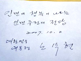 ÒÆÙëúèÀº 2007³â 10¿ù2ÀÏ ¹æºÏ Áß Æò¾ç¿¡¼ ¡ºÐÝïáìí ±¹¹æÀ§¿øÀåÀÌ °Ç°ÇÏ°Ô ¿À·¡ »ì¾Æ¾ß ÇϽðí, ¶Ç ±è¿µ³² »óÀÓÀ§¿øÀåÀÌ °Ç°ÇØ¾ß ÇÑ´Ù...½Å¸í³ ±è¿¡ ÐÝÀ§¿øÀå°ú ÐÝ»óÀÓÀ§¿øÀå, µÎ ºÐÀÇ °Ç°À» À§ÇØ °Ç¹è¸¦ Çսô١»¶ó¸ç ¡ºÀ§ÇÏ¿©¡»¸¦ ¼±Ã¢Çß´Ù. ±×´Â °°Àº ³¯ ÇлìÀÚ ÐÝïáìíÀÇ ¸¸¼ö¹«°À» ±â¿øÇÏ´Â °Ç¹è»ç »Ó ¾Æ´Ï¶ó ¼ö·Éµ¶Àç±â°üÀΡ¸Æò¾ç ¸¸¼ö´ë ÀÇ»ç´ç¡¹¿¡¼ ¡ºÀιÎÀÇ ÇູÀÌ ³ª¿À´Â ÀιÎÁÖ±ÇÀÇ Àü´ç¡»À̶ó´Â μÛÀ» ¹æ¸í·Ï¿¡ ³²°å´Ù.