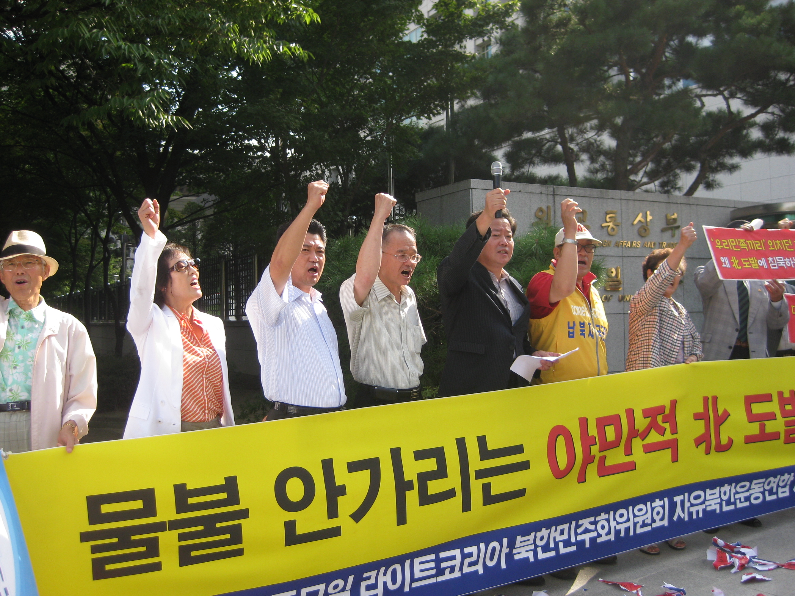 2009³â 9¿ù8ÀÏ ¿ÀÈÄ 3½Ã ¼¿ï Á¾·Î±¸ ¼¼Á¾·Î¿¡ ÀÖ´Â Á¤ºÎÁß¾Óû»ç º°°ü ÅëÀϺΠÁ¤¹® ¾Õ¿¡¼ ¶óÀÌÆ®ÄÚ¸®¾Æ¿Í ³³ºÏÀÚ °¡Á·¸ðÀÓ ¿Ü º¸¼ö´Üüȸ¿ø 20¿©¸íÀÌ ¡®ºÏ â©Íô(¼ö°ø)µµ¹ß ±Ôź ¹× °·Â ´ëÀÀ ±Ôź ±âÀÚȸ°ß¡¯À» °¡Á³´Ù.