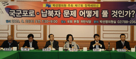 ¡ã 23ÀÏ ¿ÀÀü ±¹È¸ ±Íºó½Ä´ç¿¡¼ ¹Ú¼±¿µ ÀÚÀ¯¼±Áø´ç ÀÇ¿øÀÌ ÁÖÃÖÇÑ '±¹±ºÆ÷·Î ¹× ³³ºÏÀÚ ¹®Á¦, ¾î¶»°Ô Ç® °ÍÀΰ¡¶ó´Â Á¤Ã¥¼¼¹Ì³ª°¡ ¿·È´Ù.¨Ïµ¥Àϸ®NK