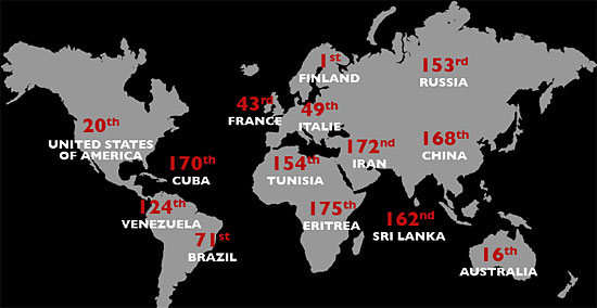 ºÏÇÑÀÇ ¾ð·Ð ÀÚÀ¯µµ°¡ ¼¼°è ÃÖÇÏÀ§±ÇÀ» ¹þ¾î³ªÁö ¸øÇß´Ù. ÇÁ¶û½º ÆÄ¸®¿¡ º»ºÎ¸¦ µÐ ±¹°æ¾ø´Â ±âÀÚȸ (Reporters Sans Frontiers)´Â 20ÀÏ ¹ßÇ¥ÇÑ ¿¬·Ê º¸°í¼­¿¡¼­ ºÏÇÑÀÇ ¾ð·ÐÀÚÀ¯ ¼öÁØÀÌ Àü¼¼°è Á¶»ç´ë»ó 175°³±¹ Áß 174À§¸¦ ±â·ÏÇß´Ù°í ¹àÇû´Ù. ÃÖÇÏÀ§ÀÎ 175À§´Â ¾ÆÇÁ¸®Ä«ÀÇ ¿¡¸®Æ®¸®¾Æ°¡ ²ÅÇû´Ù.