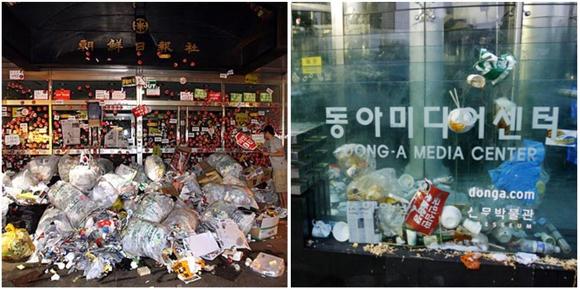 À§ »çÁøÀº Áö³­ 2008³â '±¤¿ìº´ ³­µ¿'½Ã ½ÃÀ§´ë°¡ Á¶¼±ÀϺ¸¿Í µ¿¾ÆÀϺ¸ »ç¿ÁÀ» °ø°ÝÇÑ ÈçÀûÀÌ´Ù. ÁÂÀÍÀº ÀÚ±âµé ¸¶À½¿¡ µéÁö ¾ÊÀ¸¸é ÀÌ·¸°Ô ¾ð·Ð °ø°ÝÀº ¹°·Ð °æÂûÀ» »ó´ë·Îµµ ¸Ó¸®°¡ ÅÍÁö°í ´«ÀÌ Âõ¾îÁöµµ·Ï ¹«Â÷º° °ø°ÝÀ» ÇÑ´Ù. ¿ìÀÍÀº ¾ð·Ð¿¡ ÀÇÇØ ³­µµÁúÀ» ´çÇØµµ ÀÌ·¸°Ô ÇÏÁö ¾Ê´Â´Ù(¸øÇÑ´Ù?) ¶§¹®¿¡ ¾ð·ÐÀº ÁÂÀÍÀÇ ÇàÅ¿¡ ´ëÇÑ º¸µµ´Â Á¶½ÉÇÏ°í ¿ìÀÍÀ» °ø°ÝÇÒ ¶§´Â Á¶½ÉÇÏÁö ¾Ê¾Æµµ µÈ´Ù.