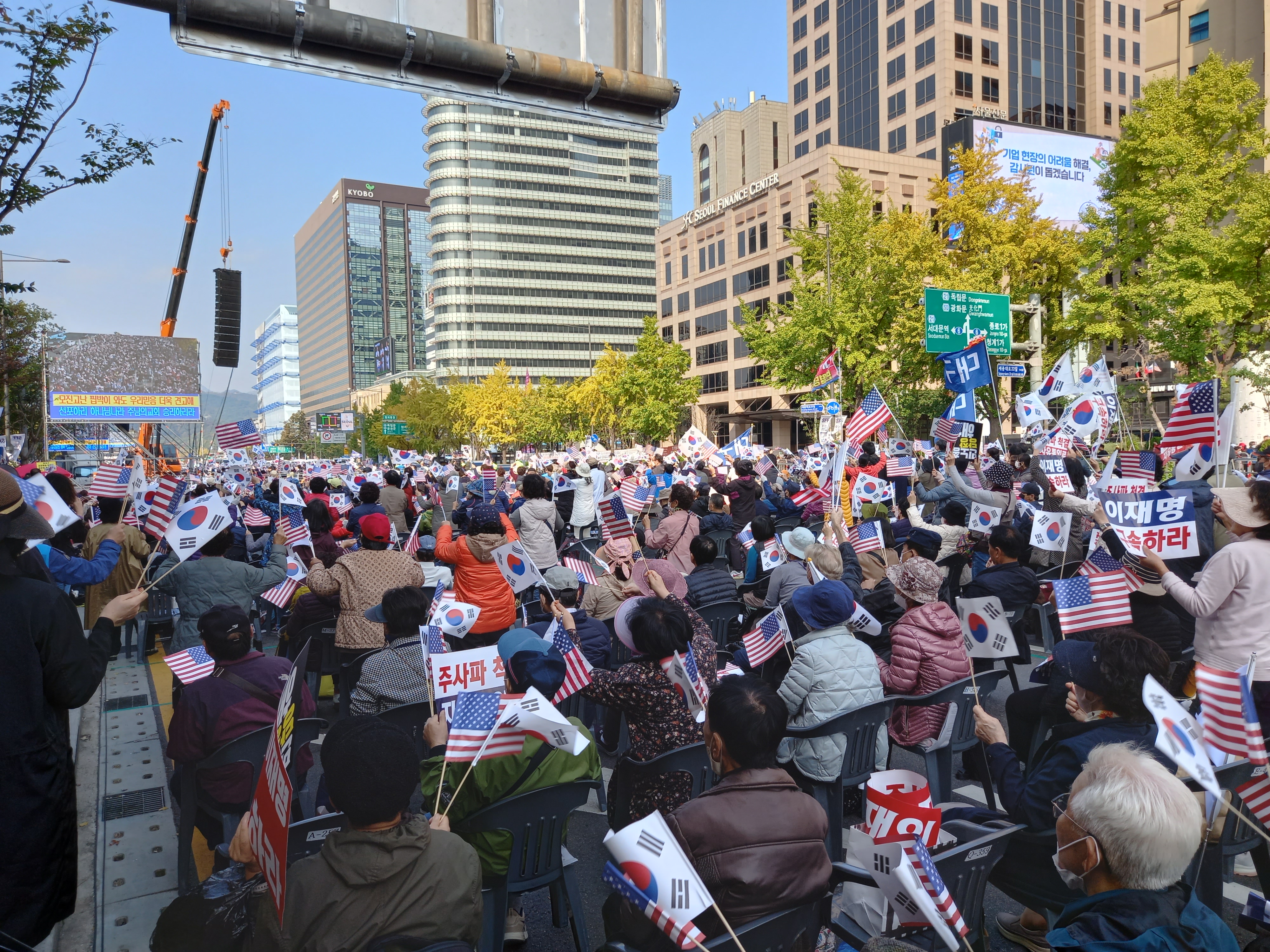 2) Yesterday, on October 22, there was a Taegeukgi rally by conservative groups and a rally by left-wing groups between Gwanghwamun Square and Namdaemun. I've been to both rally sites. It was as if the radish had been cut with a knife. The basic tendencies of both sides clearly appeared different. The demand from the right was to arrest Moon Jae In and Lee Jae-myung. Of course, they were covered with Korean flags. Leftists were full of pickets calling for Yoon Suk Yeol's resignation. They didn't even have a single Korean flag.