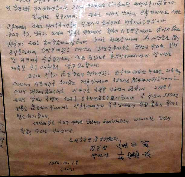 [¿ø¹®] 'Ä£¾ÖÇÏ´Â ¸ð(¸ðÅõ¿) µ¿Áö½Ã¿©...(Áß·«) ÀûµéÀÌ ±ÝÀÏ ¿ì¸®°¡ óÇÏ¿© ÀÖ´Â ¾öÁßÇϰí À§±ÞÇÑ ÇüÆíÀ» ¸®¿ëÇÏ¿© ¿ì¸®¿¡°Ô ½Ã°£ ¿©À¯¸¦ ÁÖÁö ¾Ê°í °è¼Ó Áø°øÇÏ¿© 38µµ¼±À» ħ°øÇÏ°Ô µÇÀ» ¶§¿¡´Â ¿ì¸®ÀÇ ÀÚüÀÇ ÈûÀ¸·Î »õ´Â ÀÌ À§±â¸¦ ±Øº¹ÇÒ °¡´É¼ºÀÌ ¾ø½À´Ï´Ù. ±×·¯¹Ç·Î ¿ì¸®´Â ´ç½ÅÀÇ Æ¯º°ÇÑ ¿øÁ¶¸¦ ¿ä±¸ÇÏÁö ¾ÊÀ» ¼ö ¾ø°Ô µË´Ï´Ù. Áï Àû±ºÀÌ 38µµ¼±À» ħ°øÇÏ°Ô µÉ ¶§¿¡´Â ¾à¼ÓÇÑ ¹Ù¿Í °«Ä¡ Áß±¹ ÀιαºÀÇ Á÷Á¢ Ã⵿ÀÌ Àý´ë·Î ÇÊ¿äÇÏ°Ô µË´Ï´Ù. ÀÌ»ó°ú °°ÀÌ ¿ì¸®ÀÇ ÀǰßÀ» ´ç½Å¿¡°Ô Á¦ÀÌÇÏ°Ô µÇ´Âµ¥ ÀÌ¿¡ ´ëÇÑ ´ç½ÅÀÇ È¸´äÀ» ¿ì¸®´Â ±â´Ù¸²´Ï´Ù.'