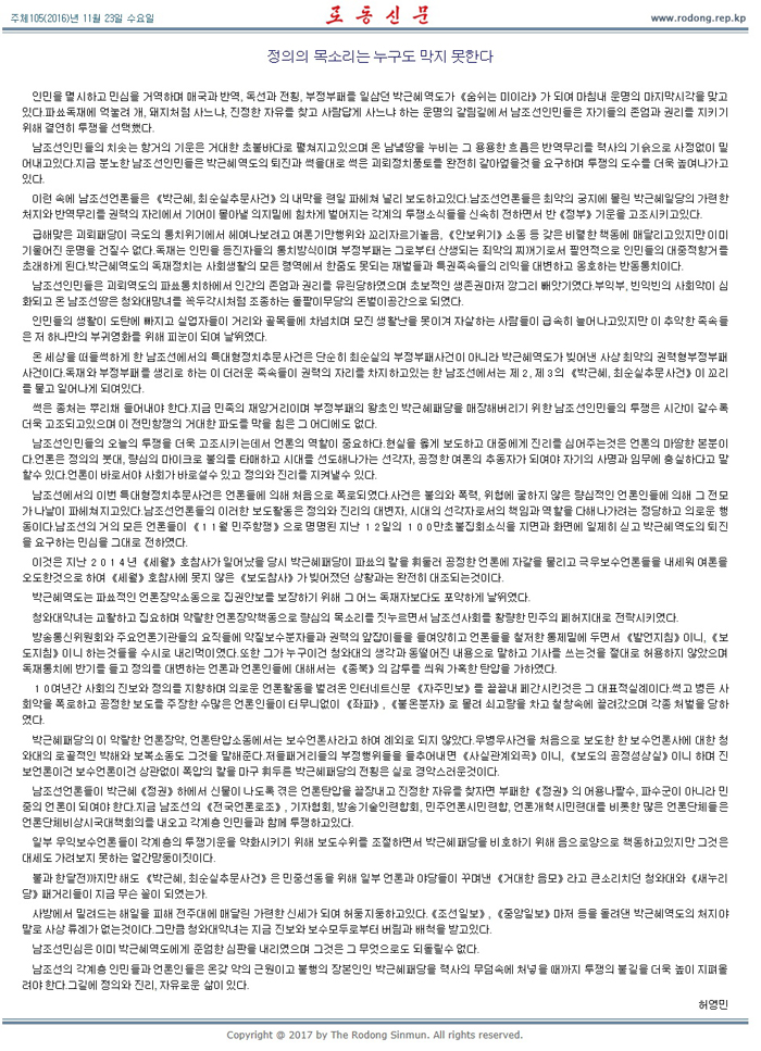 ³ëµ¿½Å¹®Àº ³²ÇÑ ¾ð·ÐÀ» Á¤ÀÇ¿Í Áø¸®ÀÇ ´ëº¯ÀÚ¶ó°í ±ØÂùÇÑ´Ù.