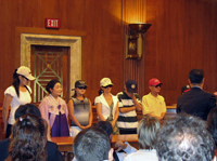 »ù ºê¶ó¿î¹é (Sam Brownback) »ó¿øÀÇ¿ø (¿À¸¥ÂÊ)ÀÌ ÁöÄѺ¸´Â °¡¿îµ¥ »ó¿øÀÇ¿ø °Ç¹°¿¡¼­ ±âÀÚȸ°ßÀ» °®°í ÀÖ´Â 6¸íÀÇ Å»ºÏ³­¹Î - RFA PHOTO/Àå¸íÈ­