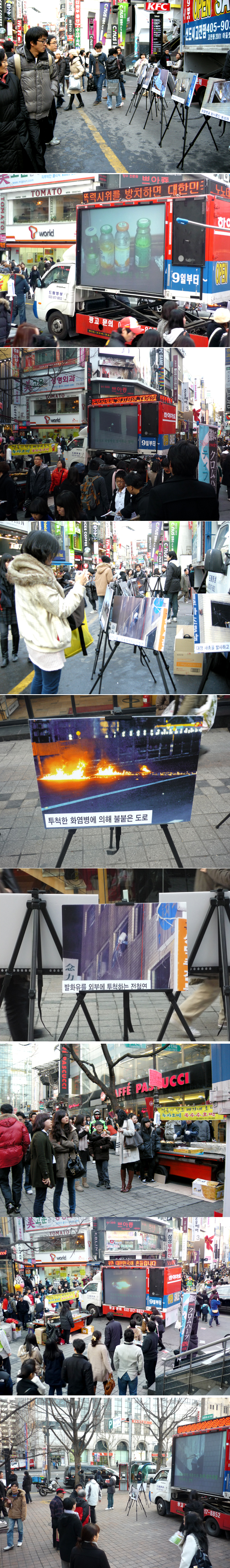 27ÀÏ ³ë³ëµ¥¸ð ȸ¿ø 10¿© ¸íÀº 20ÀÏ ¿ë»ê»çŸ¦ ÁÖµµÇÑ Àü±¹Ã¶°Å¹Î¿¬ÇÕ(Àüö¿¬)ÀÇ ÜôÛö¡¤Æø·ÂÇàÀ§ ¸ð½ÀÀ» ´ãÀº »çÁø 50¿© Àå°ú µ¿¿µ»óÀ» ¼¿ï ¸íµ¿, ±¤È¹®, °³²¿ª Àαٿ¡¼ Àü½ÃÇß´Ù. »çÁøÀº °æÂûÀ» ÇâÇØ ¿°»êº´À» ÅõôÇÏ´Â Àå¸éÀº ¹°·Ð ¹ö½º°¡ Áö³ª°¡´Â °Å¸®¸¦ ÇâÇØ È¿°º´À» ´øÁö´Â Àå¸é µîµµ Æ÷ÇԵŠÀÖ¾ú´Ù.