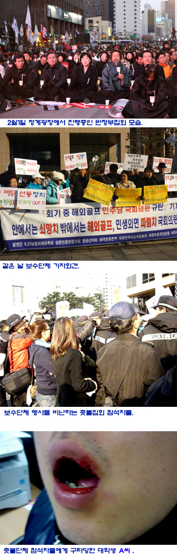 ÇÑÆí ¶óÀÌÆ®ÄÚ¸®¾Æ(´ëÇ¥ ºÀÅÂÈ«) µî º¸¼ö´Üü ȸ¿ø 20¿© ¸íÀº ¿ÀÈÄ 4½Ã°æ û°è±¤Àå ¿· ÆÄÀ̳½½º ºôµù ¾Õ¿¡¼ ¡º¼è¸ÁÄ¡ Æø·Â, °ñÇÁ¿ÜÀ¯ ¹ÎÁÖ´ç ±Ôź¡»±âÀÚȸ°ßÀ» ÁøÇàÇß´Ù.