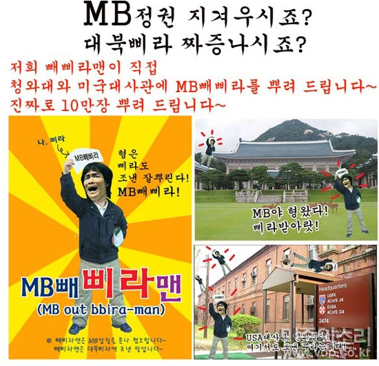 ¡ã Çѱ¹Áøº¸¿¬´ë(°øµ¿´ëÇ¥ Á¤±¤ÈÆ¡¤¿ÀÁ¾·Ä¡¤ÇÑ»ó·Ä)´Â 13ÀÏ ¼­¿ï ¸íµ¿ ½ÅÇÑÀºÇà ¾Õ¿¡¼­ ±âÀÚȸ°ßÀ» ¿­°í ¿À´Â 15ÀÏ ¿ÀÈÄ ¼­¿ï ¿©Àǵµ ±¤Àå¿¡¼­ ¡®MB OUT! »ß¶ó ³¯¸®±â¡¯ Çà»ç¸¦ °¡Áú ¿¹Á¤À̶ó°í ¹àÇû´Ù. »çÁøÀº ÃÖ±Ù ÀÎÅͳÝÀ» ÅëÇØ ±Þ¼Ó È®»êµÇ°í ÀÖ´Â ¹ÝÁ¤ºÎ »ß¶ó Ç¥º».