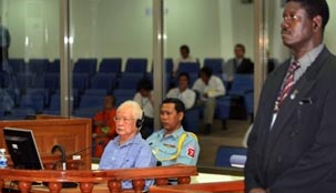 Å©¸Þ¸£ ·çÁÖ Áý±Ç ´ç½Ã įº¸µð¾Æ ´ëÅë·ÉÀ̾ú´ø Ű¿ì »ïÆÇÀÌ Áö³´Þ 27ÀÏ ÇÁ³ðÆæÀÇ Àü¹üÀçÆÇ¼Ò¿¡¼ ÇÇ°í¼®¿¡ ¾É¾Æ »çÀü ½É¸®¸¦ ¹Þ°í ÀÖ´Ù. AFP PHOTO/POOL/TANG CHHIN SOTHY