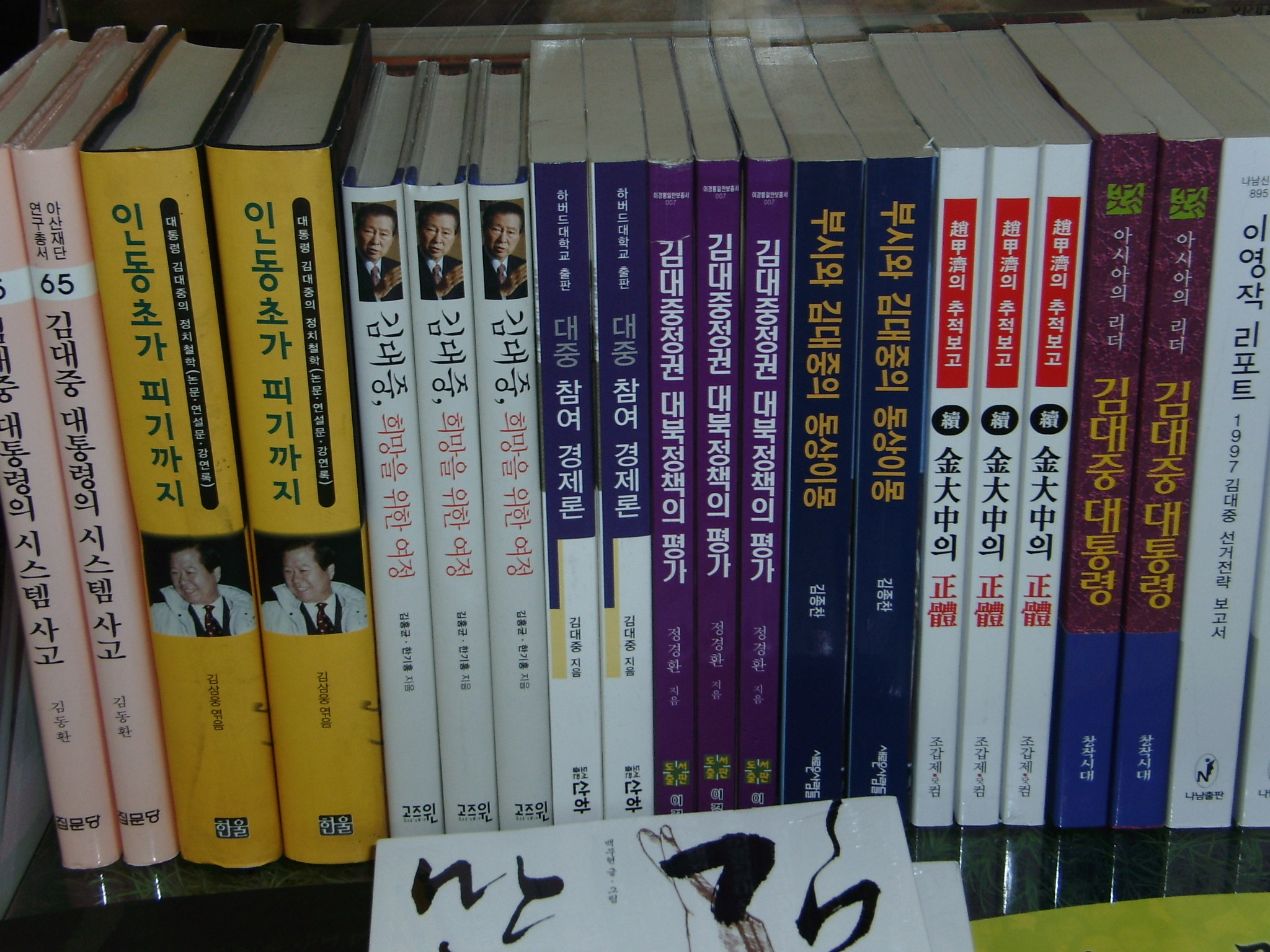 ¡ã½Ã½ºÅÛ ÞÖÍÅ(»ç°í)°¡ ¹«¾ùÀÎÁö ¼³¸íÇϰí, ±è´ëÁß ´ëÅë·ÉÀÇ ±ÝÀ¶À§±â ±Øº¹Á¤Ã¥¿¡ ÀÖ¾î¼ ½Ã½ºÅÛ »ç°í°¡ ¾î¶°ÇÑ ¾ç»óÀ¸·Î Ç¥ÃâµÇ¾î ¿Ô´ÂÁö °ËÅäÇÑ ¡®±è´ëÁß ´ëÅë·ÉÀÇ ½Ã½ºÅÛ »ç°í¡¯ (±èµ¿È¯, Áý¹®´ç) ¡ãÁ¤Ä¡ÀÎ ±è´ëÁßÀÇ »ç»ó°ú öÇÐÀ» ´ãÀº ¿¬¼³¹®, °¿¬·Ï, ³í¹® µî 43ÆíÀ» ¿«Àº Ã¥ ¡®Àε¿Ãʰ¡ ÇDZâ±îÁö¡¯ (±è»ï¿õ, ÇÑ¿ï¾ÆÄ«µ¥¹Ì) ¡ã±èÈ«±Õ, ÇѱâÈ«±âÀÚ°¡ Û¾ÝÁ(¹æºÏ)À» °á½ÉÇÑ ±è´ëÁß îñ´ëÅë·É°ú ´ëÈÇÑ ³»¿ëÀ» ÀÛ¼ºÇÑ ÃֽЏ®Æ÷Æ® ¡®±è´ëÁß, Èñ¸ÁÀ» À§ÇÑ ¿©Á¤¡¯(±èÈ«±Õ¡¤ÇѱâÈ«, °íÁîÀ©) ¡ã±è´ëÁß îï´ëÅë·ÉÀÌ 80³â´ë ÃÊ ¹Ì±¹ ¸Á¸í ±â°£ Áß Àú¼úÇÑ Çѱ¹ °æÁ¦ ¿¬±¸¼ ¡®´ëÁß Âü¿© °æÁ¦·Ð¡¯(±è´ëÁß, »êÇÏ) ¡ã³ÃÀüÀÌÈÄ Àû°ú µ¿Áö°¡ ºÒºÐ¸íÇÑ È¸»öÀüÀï ½Ã´ë¿¡ »ì°í ÀÖ´Â ¿ì¸®³ª¶óÀÇ ´ëÀÀ ¹æ¾ÈÀ» ³íÀÇÇÑ ¡®ºÎ½Ã¿Í ±è´ëÁßÀÇ µ¿»óÀ̸ù¡¯(±èÁ¾Âù, »õ·Î¿î»ç¶÷µé) ¡ãî¤Ú¸ ÀϺ»ÀÎ Àú³Î¸®½ºÆ®ÀÌÀÚ ±è´ëÁß ·ÐÀÇ Àü¹®°¡·Î Àß ¾Ë·ÁÁø °¡Äí¸¶ ´ÙÄ«½Ã°¡ ±ÛÀ» ¾´ ¡®¾Æ½Ã¾ÆÀÇ ¸®´õ ±è´ëÁß ´ëÅë·É¡¯(°¡Äí¸¶ ´ÙÄ«½Ã, Ãß¼ºÃá¹ø¿ª, âÀ۽ôë) ¡ã1997 ±è´ëÁß ¼±°ÅÀü·« º¸°í¼ÀÎ ¡®ÀÌ¿µÀÛ ¸®Æ÷Æ®¡¯(ÀÌ¿µÀÛ, ³ª³²ÃâÆÇ) µî ¿©´ü ±ÇÀº ±è îñ´ëÅë·É °ü·Ã Ã¥µé·Î ¿¹Àü¿¡ ¹ß°£µÈ Ã¥µéÀÌ ´ëºÎºÐÀÌ´Ù.