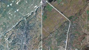 À§¼º»çÁøÀ» Á¦°øÇÏ´Â ±¸±Û ¾î½º(Google Earth)°¡ ÃÖ±Ù »õ·Î ±³Ã¼ÇÑ ºÏÇÑ Æò¾ÈºÏµµ ½ÅÀÇÁÖ ÀαÙÀÇ »çÁøÀÔ´Ï´Ù. 2009³â 4¿ù°ú 10¿ù¿¡ ÂïÀº »çÁøÀ» ºñ±³ÇÏ¸é ½ÅÀÇÁÖºÎÅÍ »¸¾î ³ª¿Â °í¼Óµµ·Î(highway) °ø»ç°¡ »ó´çÈ÷ ÁøÃ´µÈ °ÍÀ» È®ÀÎÇÒ ¼ö ÀÖ½À´Ï´Ù.