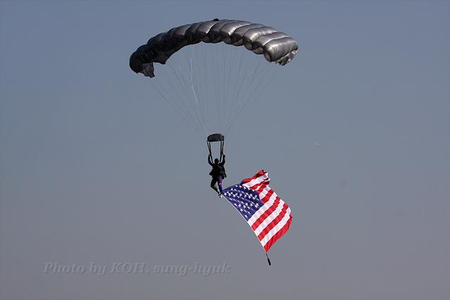 ãÒÀÌ °ÅÇàµÇ±â Àü ãÒîñÇà»ç·Î¼ Çϴÿ¡¼± ½ºÄ«ÀÌ´ÙÀ̹öÀÇ °í°ø³«Çϰ¡ ÆîÃÄÁø´Ù. À̶§ Çѹ̿ìÈ£ÀÇ »ó¡À¸·Î Çѹ̾籹ÀÇ ±¹±â°¡ »çÁøÃ³·³ ÆîÃÄÁö¸é¼ ³»·Á¿Â´Ù. À̶§¸¦ ¸ÂÃß¾î¼ ºñÇàÀå¿¡¼ ¾Ö±¹°¡¿Í ¹Ì±¹±¹°¡°¡ ¿ï·Á ÆÛÁø´Ù. Àå³» ¾Æ³ª¿î¼´Â ºÐ¸íÇÏ°Ô ±¹±â¿¡ ´ëÇÑ ç߸¦ °®Ãß¾î ÁÙ °ÍÀ» ¾È³»ÇÑ´Ù.