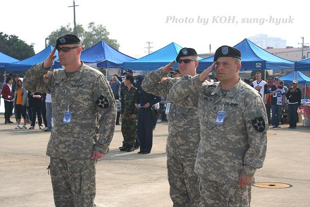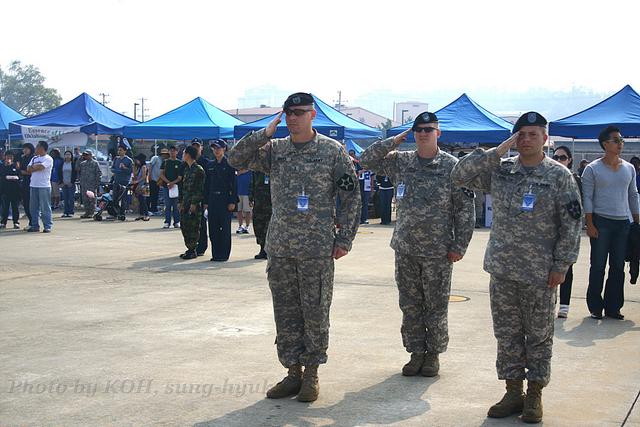 2010³â ¿ÃÇØ  ¶È°°Àº Àå¼Ò¿¡¼ Çѱ¹±º°ú ¹Ì±ºÀÇ ¸ð½ÀÀº ¿ª½Ã³ª Çϴðú ¶¥ Â÷ÀÌ¿´´Ù. ³ ±¹±â¿¡ ´ëÇÑ °æ·Ê¸¦ ÇÏ¸é¼ È¤½Ã³ª ½Í¾î¼ ÁÖÀ§¸¦ Èê±ê »ìÆñ´Ù. 2008³âÀÇ ±× ¸ð½À ±×´ë·Î ¡®Â÷·Ç¡¯, ¡®°æ·Ê¡¯ÇÏ´Â ¹Ì±º°ú  °¢¾ç°¢»öÀÇ ÀÚ¼¼¸¦ ÃëÇϰí ÀÖ´Â Çѱ¹±ºÀ¸·Î ºÐ¸íÇÏ°Ô ¾ù°¥¸®°í ÀÖ¾ú´Ù.  ³ ±× º¼½é»ç³ª¿î ¸ð½ÀÀ» Ä«¸Þ¶ó¿¡ ´ãÁö ¾ÊÀ» ¼ö ¾ø¾ú´Ù. ±×³ª¸¶ ´«¿¡ ´ú °Å½½¸®´Â ¸ð½À¸¸ ¿Ã·Áº»´Ù.