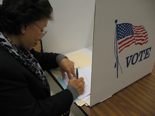 ÇöÀå ¸®Æ÷Æ®: ÅõÇ¥¼Ò¿¡ µµÂøÇÑ À¯±ÇÀÚµéÀº ¸ÕÀú À¯±ÇÀÚ ¸íºÎ¿¡ ÀÚ½ÅÀÇ À̸§À» È®ÀÎÇÑ µÚ ÁöÁ¤µÈ ÅõÇ¥ ±â°è·Î °¡¼­ ÀÚÀ¯·Ó°Ô ÁöÁöÇÏ´Â È常¦ ¼±ÅÃÇÕ´Ï´Ù.