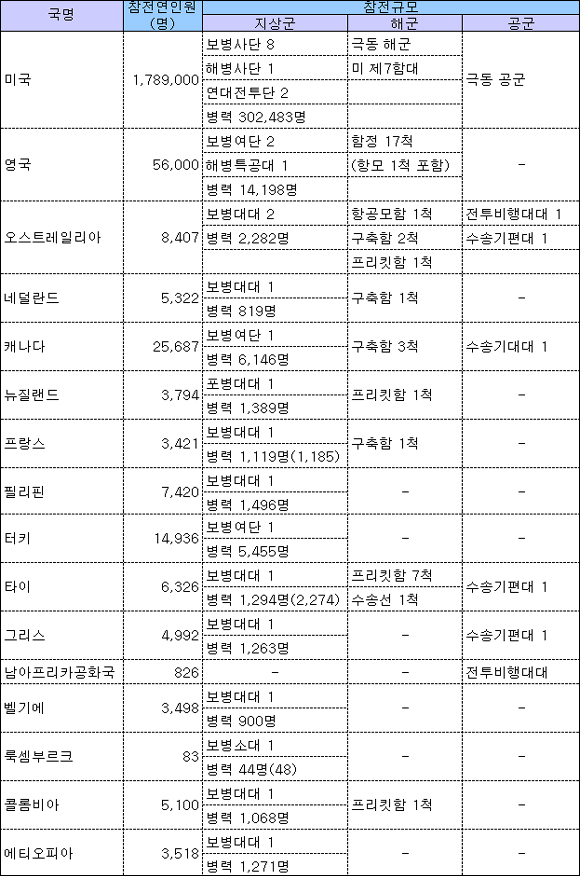 ¡Ø ÂüÀü ±Ô¸ðÀÇ º´·ÂÀº ÀüÀï ¸»±â ÃÖ´ë ¼öÁØÀ» À¯ÁöÇÑ º´·Â(1953.7.) ¡Ø ()ÀÇ º´·ÂÀº ÀüÀï ¸»±â°¡ ¾Æ´Ñ ÃÖ´ë ¼öÁØÀ» À¯ÁöÇÑ º´·Â   2. 6¡¤25 ÂüÀü 16°³±¹(ÀüÅõºÎ´ë ÆÄ°ß) »ç»óÀÚ Åë°è