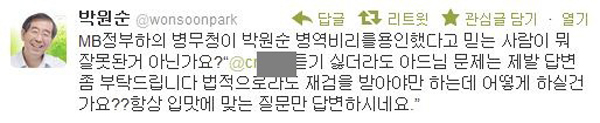 ¼¿ï½ÃÀå ¹Ú¿ø¼øä«°¡ ¾Æµé ¹ÚÁֽž¾¿Í °ü·ÃµÈ º´¿ªÀÇȤ ¹®Á¦¿¡ ´ëÇØ ÀÔÀ» ¿¾ú´Ù.