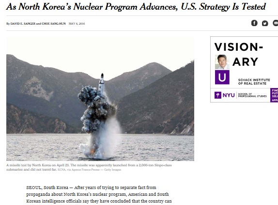 ¿ø¹®/South Korea Says North Has Capacity to Put Nuclear Warhead on a Missile(APRIL 5, 2016)