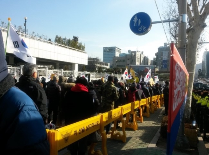 ÁÖÃÖ ÃøÀº À̳¯ °ËÂû¿¡ Ç×ÀÇÇÏ´Â ¶æÀ¸·Î Âü¼®ÀÚµé ¸ðµÎ°¡ ´ë°ËÂûû ¾Õ µµ·Î¸¦ Á¡°ÅÇÏ°í ¡®µå·¯´¯±â¡¯¸¦ ½ÃµµÇÏ·Á Çß´Ù. °æÂûÀº 1500¿©¸íÀÇ º´·ÂÀ» ÅõÀÔÇÏ¿© À̵éÀÇ µµ·ÎÁ¡°Å »óȲÀ» »çÀü¿¡ Â÷´ÜÇß´Ù. ÁÖÃÖ Ãø°ú Áýȸ Âü°¡ÀÚµéÀº ¡°¿ì¸®°¡ °ø±Ç·Â(°æÂû)À» ÀûÀ¸·Î µ¹¸®¸é ÁÂÆÄ¿Í ´Ù¸¦ ¹Ù ¾ø´Ù. ±×µé°ú ¶È°°Àº ÇൿÀ» ¿ì¸® ¾Ö±¹¼¼·ÂÀÌ ÇØ¼­´Â ¾È µÈ´Ù. ¿À´Ã Áýȸ¸¸À¸·Îµµ ¿ì¸®ÀÇ Àǻ簡 °ËÂû¿¡°Ô Àü´ÞµÆ´Ù°í º»´Ù¡±¸é¼­ ÀÚÁø ÇØ»êÇß´Ù.