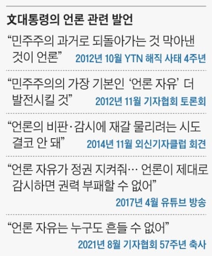¹® ´ëÅë·ÉÀÌ Ä§¹¬ÇÑ´Ù¸é ¾ð·Ð°ú °ü·ÃÇÑ ±×°£ÀÇ ¹ß¾ðÀº °¡Áõ½º·¯¿î °ÅÁþ¸», ¹«Ã¥ÀÓÇÑ À¯Ã¼ÀÌÅ» ¹ß¾ðÀ¸·Î Áöź¹ÞÀ» ¼ö¹Û¿¡ ¾ø½À´Ï´Ù. ¶Ç, ¹® ´ëÅë·ÉÀÇ ¹ß¾ðÀ» ´Ù·é ±â»çµéÀ̾߸»·Î ±¹¹ÎÀÇ ´«°ú ±Í¸¦ °¡·Á¿Â ¡®°¡Â¥ ´º½º'¿´À½À» ±¹¹ÎÀº ¾Ë°Ô µÇ½Ç °ÍÀÔ´Ï´Ù.