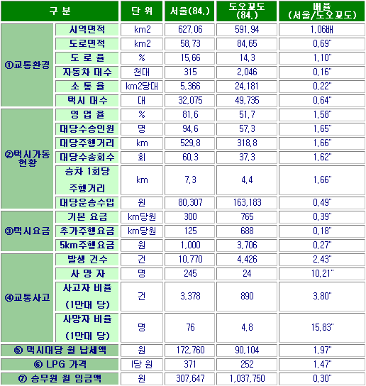 ¼­¿ïÅÃ½Ã¿Í Åä¿ÀÄìÅýÃÀÇ ºñ±³