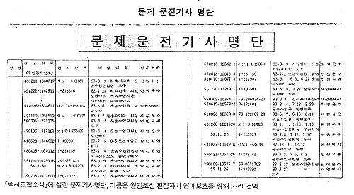 ¿îÀü»çµéÀÇ ºÒÇàÀÌ ÀÌµé ¿©·ÐÁÖµµÃþ¿¡ ³¢Ä¥ ¾Ç¿µÇâÀ» »ý°¢ÇÑ´Ù¸é ÅýÃÀ̱ÇÈ´Â ±¹°¡Àû ´ë¿ªÁ˶ó°íµµ ÇÒ ¼ö ÀÖ´Ù. Åýù®Á¦¸¸Å ¸¹Àº »ç¶÷µé¿¡ ÀÇÇØ, ¸¹ÀÌ ¶°µé¾îÁø »çȸÇö»óµµ º°·Î ¾øÀ» °ÍÀÌ´Ù. 84³â¿¡¸¸ ÇØµµ Àü±¹´ëµµ½Ã¿¡¼± ÅýÿîÀü»çµéÀÇ Áý´Ü½ÃÀ§, ºÐ½ÅÀÚ»ì»ç°ÇÀÌ ÀÕ´Þ¾Ò´Ù. ³ëµ¿ºÎ°¡ Áý°èÇÑ 84³â 10¿ù ÇöÀçÀÇ ³ë»çºÐ±Ô 97°Ç Áß °¡Àå ¸¹Àº 18°ÇÀÌ ÅýÃȸ»ç¿¡¼ ÀÏ¾î³ °ÍÀ̾ú´Ù.
