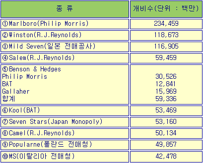 Áö³ÇØ ¼Ö´ã¹è´Â ¾à4¹é4¾ï °³ºñ°¡ ÆÈ·Á ¼ö·® ¸é¿¡¼± ÀüüÀÇ 52.8%, ±Ý¾× ¸é¿¡¼± 66.3%¸¦ Â÷ÁöÇß´Ù. ÆÇ¸Å¼ö·® ¸é¿¡¼ ¼ÖÀº ¼¼°èÀÇ ¼ö¸¹Àº À¯¸í ´ã¹è °¡¿îµ¥ 11À§Âë µÈ´Ù. Áö³ÇØ 5¹é ¿øÂ¥¸® °í±Þ´ã¹è ÆÇ¸Å¾×Àº ÀüüÀÇ ¾à 81%¿´´Ù. Çѱ¹Ã³·³ °í±Þ´ã¹è¿¡ ¾Ö¿¬°¡µéÀÌ ÁýÁߵǴ ³ª¶ó´Â ´Þ¸® ¾ø´Ù. Á¶¿µ±æ(ðáçÈÑÎ)Àü¸ÅûÀåÀº Áö³ÇØ 6¿ù 27ÀÏ ±¹¹æ´ëÇпø °¿¬¿¡¼ ÀÌ·¸°Ô ¸»Çß´Ù. ¡ºÀϺ»¿¡¼± ¸¶Àϵ弼ºì À̶ó´Â ´ã¹è°¡ Àüü ÆÇ¸Å·®ÀÇ ¾à 70%¸¦ Â÷ÁöÇϰí ÀÖÀ¾´Ï´Ù. ¿ì¸®·Î ¸»ÇÏÀÚ¸é ÀºÇϼö Á¤µµÀÇ Áß±Þ´ã¹èÀÔ´Ï´Ù. ¿ì¸®´Â ÀÚ°í·Î Á¦ÀÏ ºñ½Ñ ´ã¹è¸¦ Á¦ÀÏ ¸¹ÀÌ ÇÇ¿ó´Ï´Ù. º»Àεµ 5¹é¿ø Â¥¸®¸¦ ÇÇ¿ì°í ±â»çµµ 5¹é¿ø Â¥¸®¸¦ ÇÇ¿ö¿ä. »ç¶÷ À§¿¡ »ç¶÷ ¾øÀ¸´Ï±î ÇÇ¿ì´Â °Í ÀÚü¸¦ °¡Áö°í ³ª¹«¶ö ¼ö¾ß ¾ø°Ú½À´Ï´Ù ¸¸ ¼Òµæ ¼öÁØÀ» °í·ÁÇØ º¼ ¶§ °°Àº ´ã¹è¸¦ ÇÇ¿î ´Ù´Â °ÍÀº ¹®Á¦°¡ ÀÖ´Ù°í º¾´Ï´Ù¡»