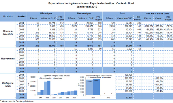 ½ºÀ§½ºÀÇ ¡®½Ã°è»ê¾÷¿¬ÇÕ(The Federation of Swiss Watch Industry)'ÀÌ Áý°èÇÑ ¿ÃÇØ »ó¹Ý±âÀÇ ´ëºÏ ¼öÃâ Åë°èÀÔ´Ï´Ù. 1¿ùºÎÅÍ 5¿ù±îÁö ºÏÇÑ¿¡ ¼öÃâÇÑ ½ºÀ§½ºÀÇ ¼Õ¸ñ½Ã°è´Â ÇÑ °³µµ ¾ø½À´Ï´Ù.
